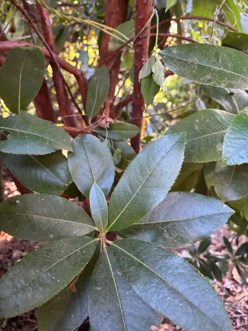 Schoolyard Use: This tree has glossy, dark green leaves that provide a striking contrast to its peeling, reddish-brown bark, making it an excellent subject for lessons on bark texture and plant adaptation. Its clusters of small, bell-shaped flowers are followed by bright, round fruits, which can be used to teach about pollination and seed dispersal. The evergreen foliage ensures year-round interest and can be incorporated into discussions on plant physiology and climate adaptation. The tree’s unique characteristics make it a versatile addition to any school garden.