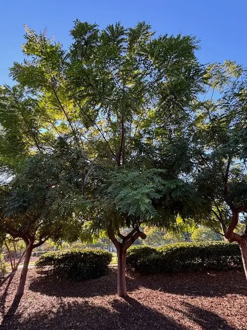 This tree is known for its cascading clusters of bright yellow flowers that create a striking visual display during the summer months. Its delicate, fern-like leaves provide a soft, airy texture, making it a popular choice for urban landscapes. The tree’s moderate size and graceful, spreading canopy offer ample shade without overwhelming smaller spaces. It thrives in sunny locations and is relatively drought-tolerant once established. This tree’s vibrant blooms and attractive foliage make it a favorite for adding a touch of elegance and color to streets and parks.