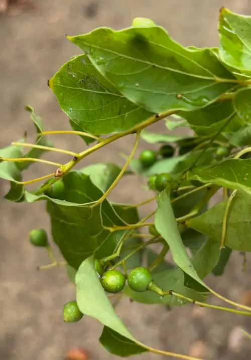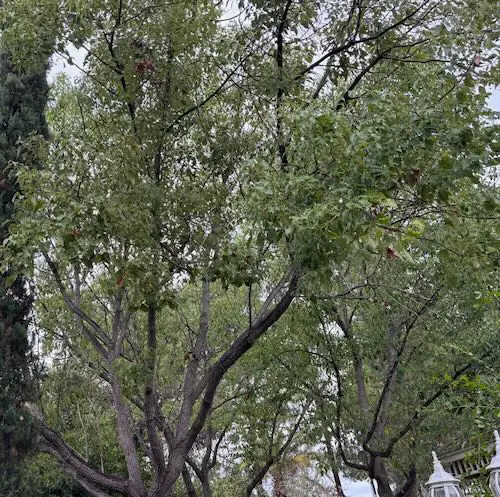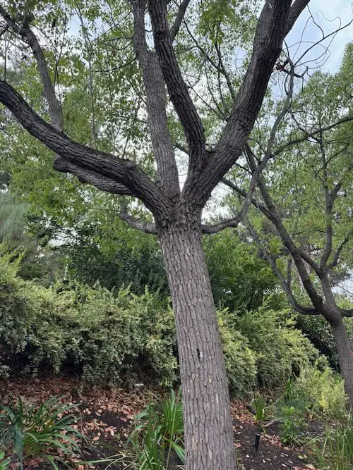 This tree is known for its broad, spreading canopy that provides ample shade. Its glossy, evergreen leaves emit a distinctive, pleasant aroma when crushed. In spring, it produces small, yellowish flowers that add a subtle charm to its appearance. The dark, rough bark adds a rugged texture to the landscape. Over time, it can grow to be quite large, making it a prominent feature in parks and streetscapes. Its resilience and low maintenance needs make it a popular choice for urban planting.