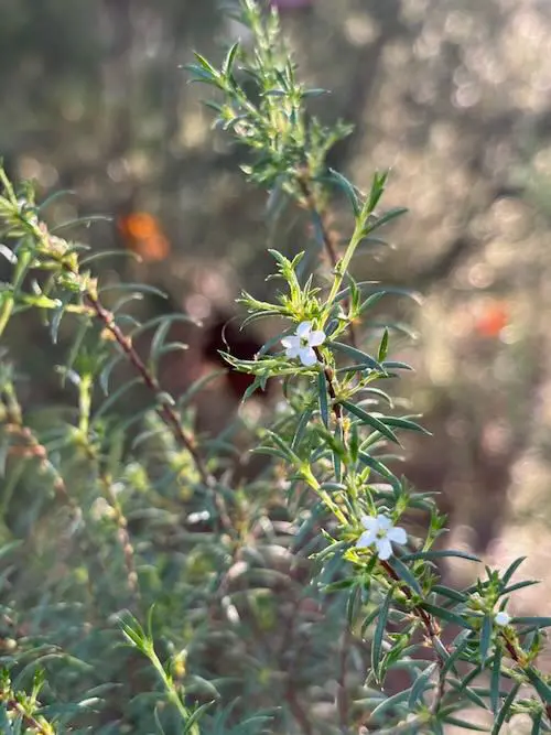 White Breath of Heaven is a finely textured wispy shrub growing 4′ -5′ high and wide, with tiny white flowers that bloom in winter and spring. Flowers are fragrant, attracting bees and butterflies. Foliage is evergreen with soft, tiny, needle-like leaves that are fragrant. Plant near walkways so leaves release fragrance when brushed. Pink buds appear on the shrub before bloom period. It does well in full to part sun with regular watering.