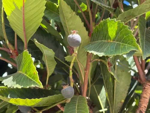 Bronze Loquat is more often planted than Japanese Loquat. Its shiny bronzy green new foliage with reddish highlights is quite attractive, and it rarely sets fruit. Large panicles of deep pink flowers are showy in the spring. It looks best with regular pruning to maintain its shape, and regular deep watering to promote healthy growth. It may require regularly scheduled light top-trimming (but not necessarily shearing) of vigorous top shoots to maintain its height below 25. It is not drought tolerant.