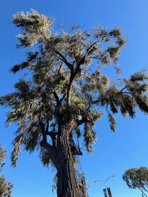Schoolyard Use: This tree has narrow, lance-shaped leaves that can be used to teach about leaf shapes and adaptations to dry climates. Its bark is deeply furrowed and peels away in strips, offering a tactile experience for lessons on tree anatomy. The small, clustered flowers attract various pollinators, making it ideal for discussions on ecosystems and pollination. The tree’s resilience to drought conditions can also be a practical example for environmental science topics.