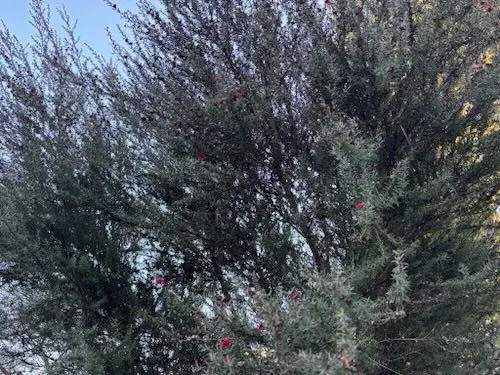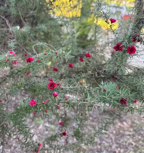 Leptospermum scoparium is a small, compact, and highly ornamental shrub. It rarely forms into a tree. Its bluish-green, needle-like leaves have prickly ends and release a pleasant aroma when bruised. Late spring yields elegant, cup-shaped blooms in shades of white, pink, and red, which are adored by bees. While tolerant of light shade and coastal conditions, this plant requires protection from cold and strong winds. It is considered invasive in South Africa and Hawai’i.