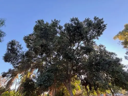 This tree is known for its striking, bright red flowers that bloom in clusters, creating a vibrant display. It has a gnarled, twisted trunk and branches that give it a unique, sculptural appearance. The leaves are leathery and dark green, often with a silvery underside, adding to its visual appeal. This tree is well-suited to coastal areas, as it is highly tolerant of salt and wind. It provides excellent shade and can attract a variety of birds and pollinators. Its resilience and beauty make it a popular choice for parks and gardens in urban settings.