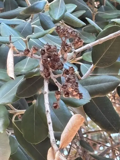 Schoolyard Use: This tree has striking, leathery leaves with a silvery underside, ideal for studying plant texture and adaptation to coastal environments. It produces vibrant, brush-like flowers that attract pollinators, offering a practical example of plant-pollinator interactions. The tree’s resilience to wind and salt spray can be used to discuss plant survival strategies in harsh conditions. Its gnarled branches and dense canopy provide ample shade, making it a pleasant spot for outdoor learning sessions.